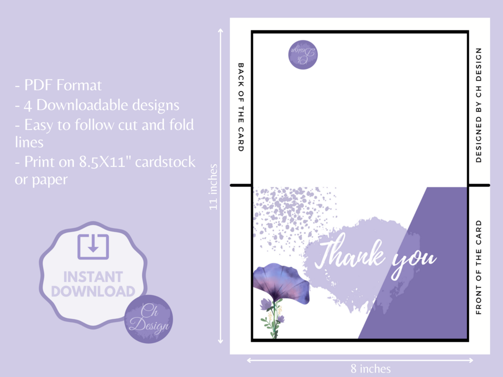 - 4 PDF files for Thank You Card designs, 7x5 Folded Size in a ZIP Folder